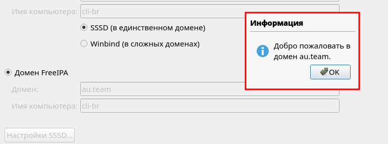 Ввод рабочей станции в домен FreeIPA в Центр управления системой: