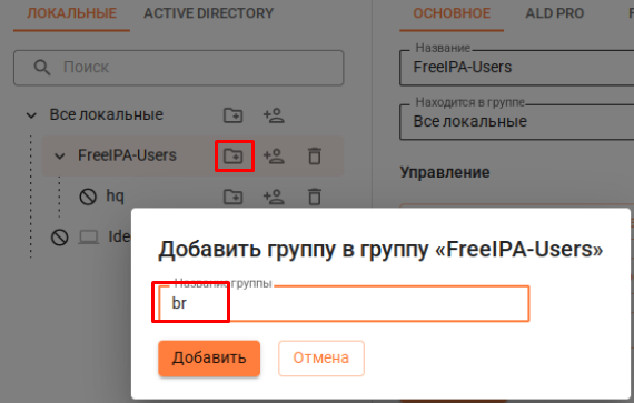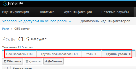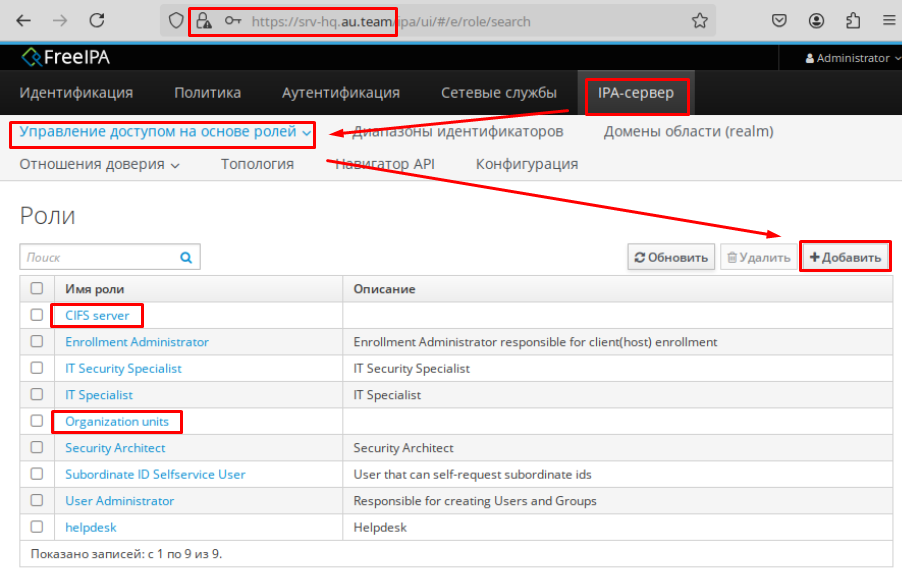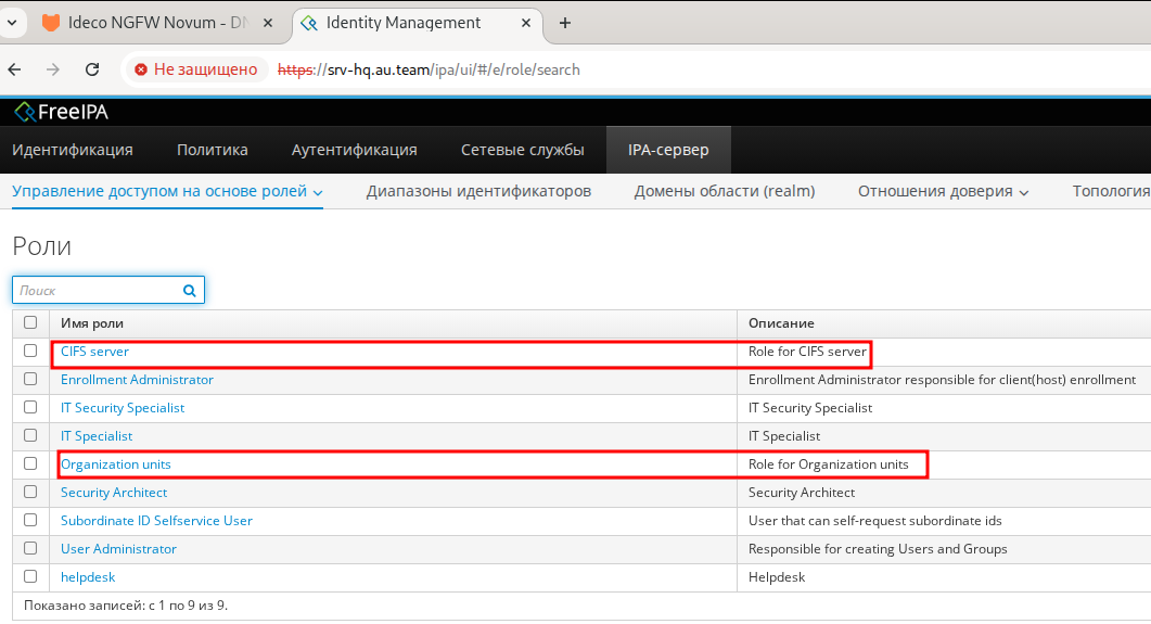 ipa role-add "CIFS server" --desc="CIFS server" ipa role-add "Organization units" --desc="Organization units" ИЛИ через браузер на ADM-HQ![]()