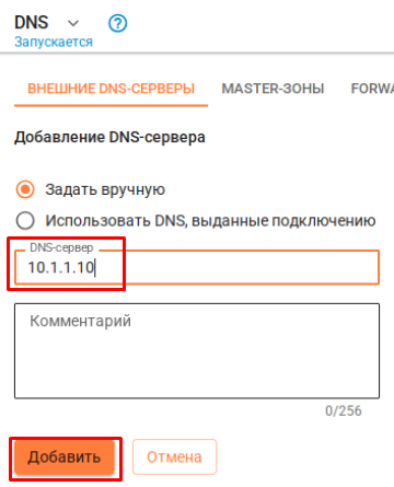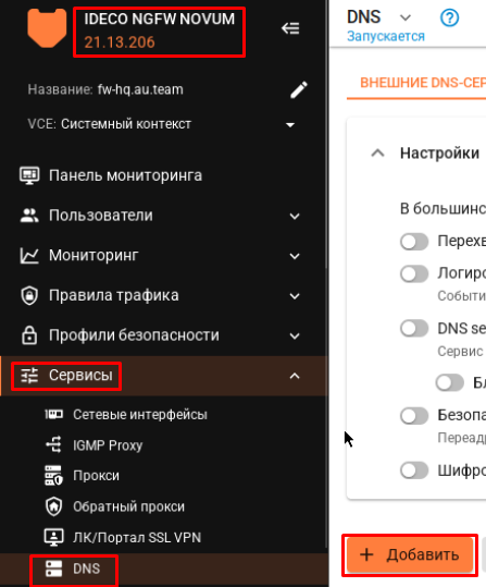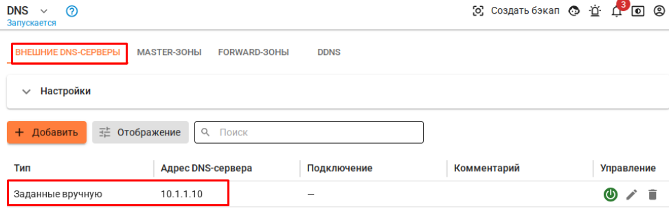 - перейдём в Сервисы → DNS → Внешние DNS-серверы