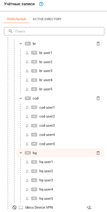 - Для импорта пользователей из домена FreeIPA на FW-HQ необходимо создать следующую требуемую структуру групп на уровне FW-HQ