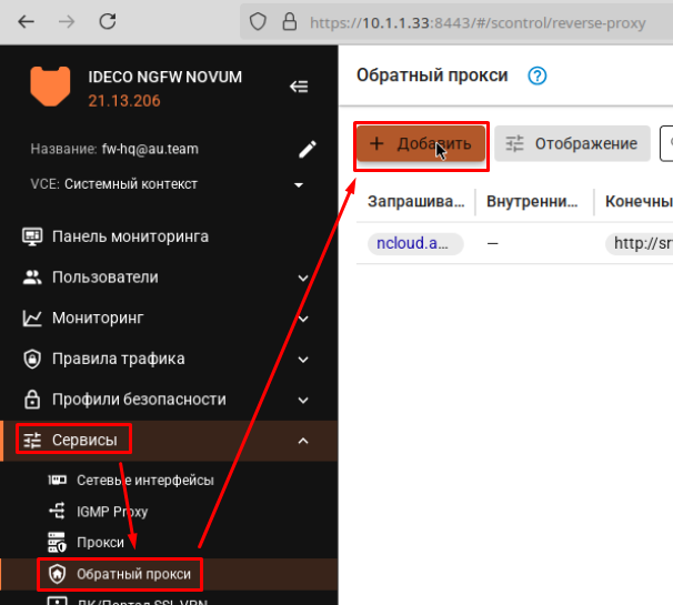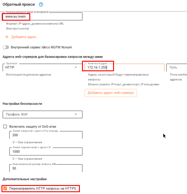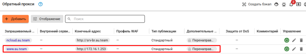 - Добавляем обратный прокси для безопасной публикации в рамках локальной сети: