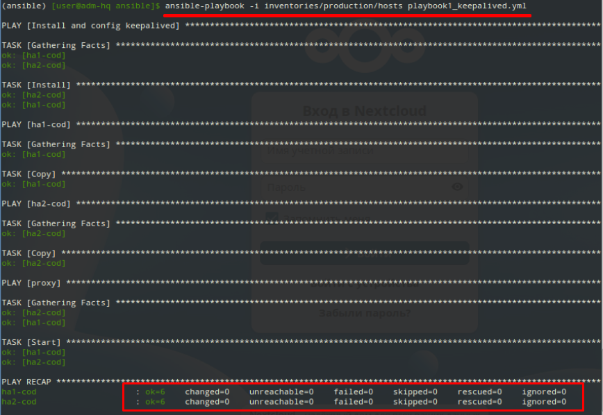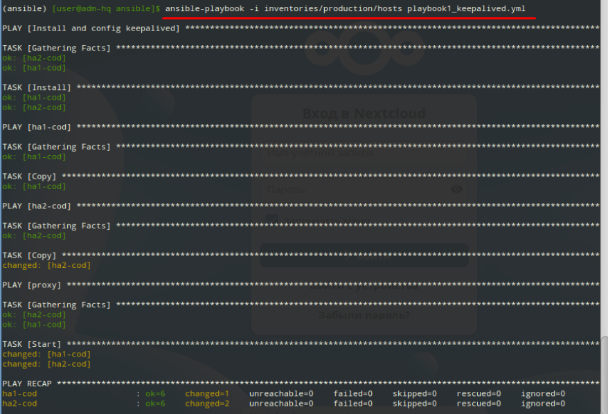 ansible-playbook -i inventories/production/hosts playbook1_keepalived.yml