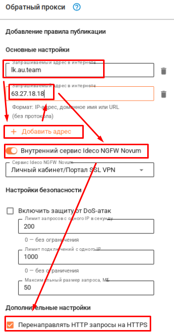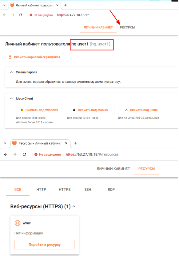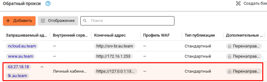 • Опубликуем личный кабинет как из локальной сети по имени, так и из внешней сети по публичному IP: