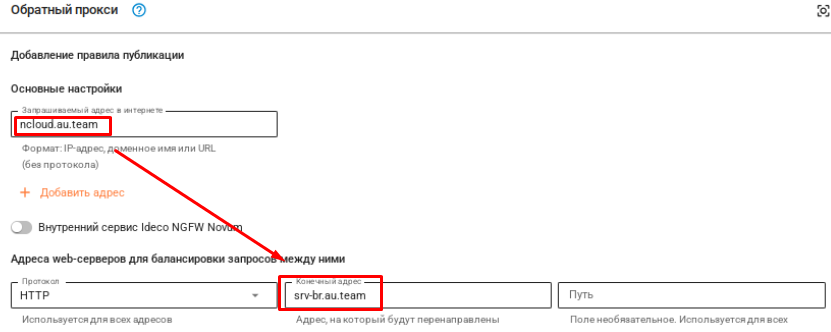 - Добавляем обратный прокси для безопасной публикации в рамках локальной сети: