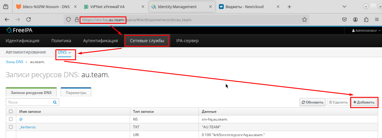 - На DNS во FreeIPA добавляем CNAME запись следующего вида: