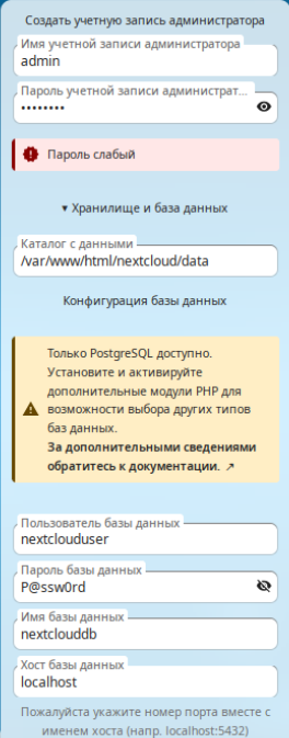 su - postgres -s /bin/bash -c 'createdb -O nextclouduser nextclouddb'