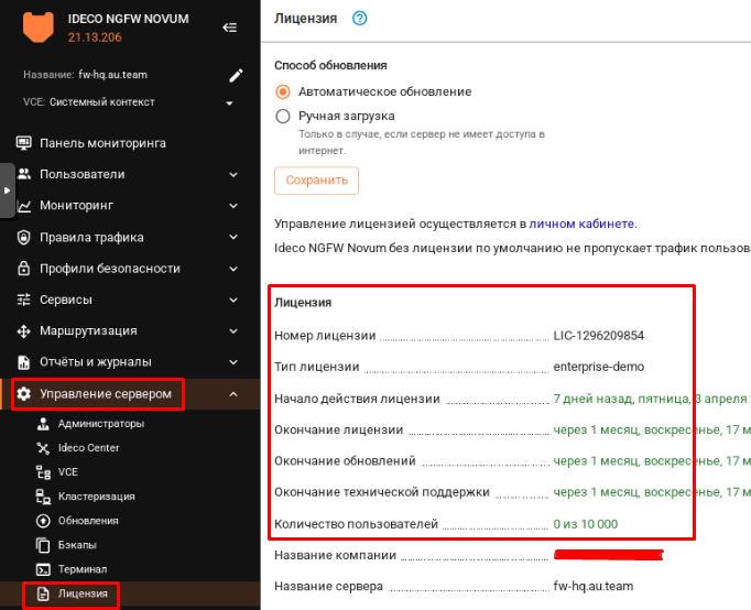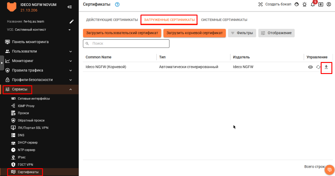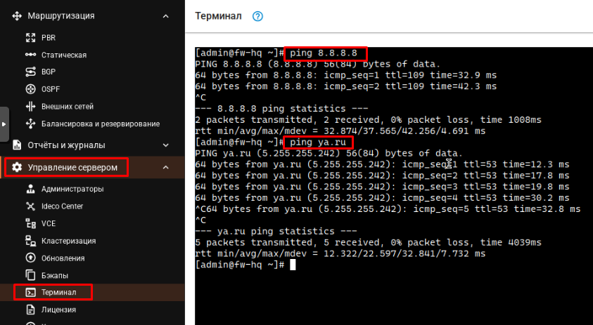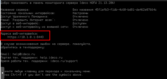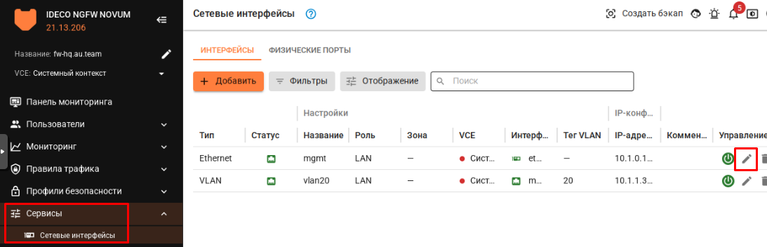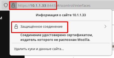 Теперь доступ в веб-интерфейс управления FW-HQ, обращаясь по https://10.1.1.33:8443