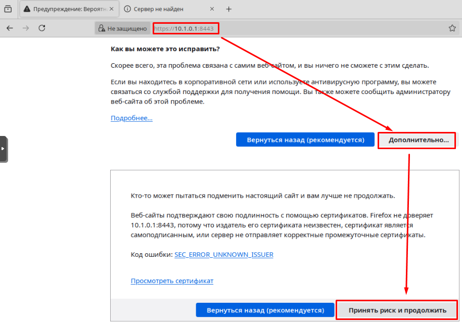 Далее необходимо перезапустить браузер и перейти на IDECO https://10.1.1.33:8443