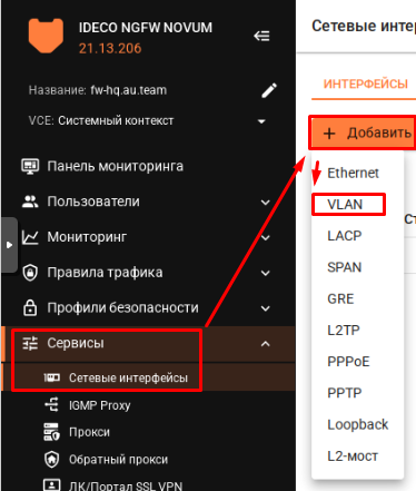 - Создаём VLAN интерфейс на основе физического и указываем VID и IP-адрес в соответствии с L2 и L3