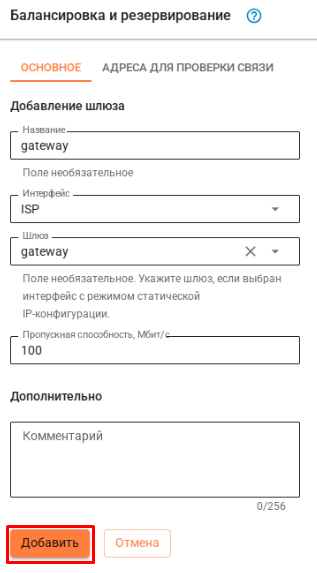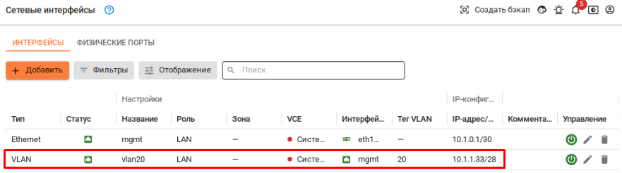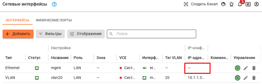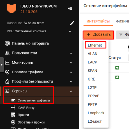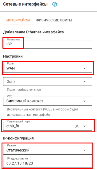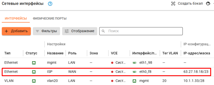 Выполним добавление Ethernet-интерфейса с ролью WAN