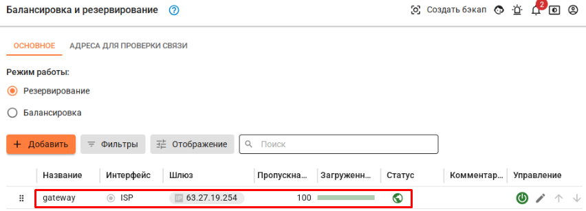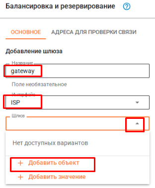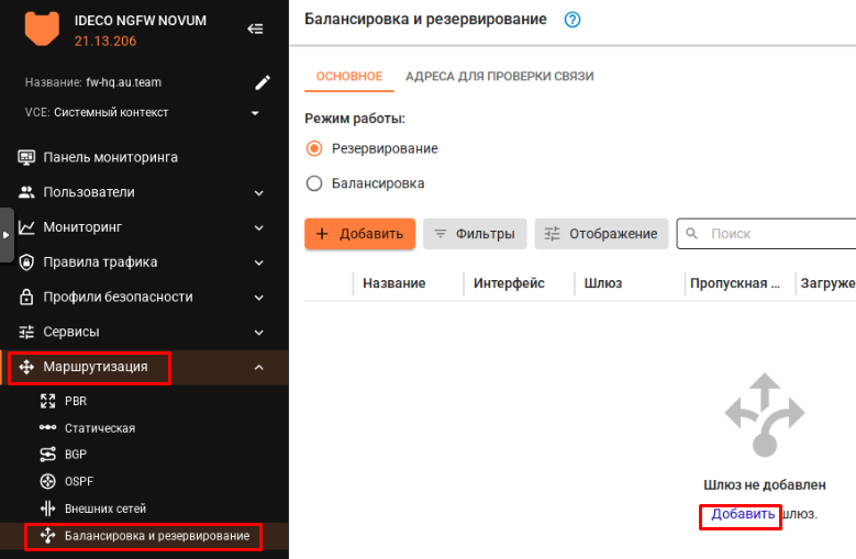 Для доступа к сети интернет нужно настроить Балансировку и резервирование: