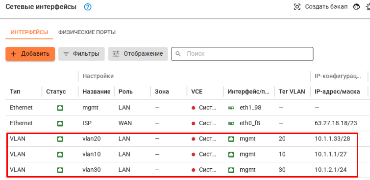 Создать все необходимые VLAN (10 и 30) в соответствие с L2 и L3 аналогично как для vlan 20