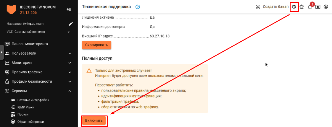 - временно включим режим «Разрешить интернет всем» для установки и развёртывания домена FreeIPA на SRV-HQ