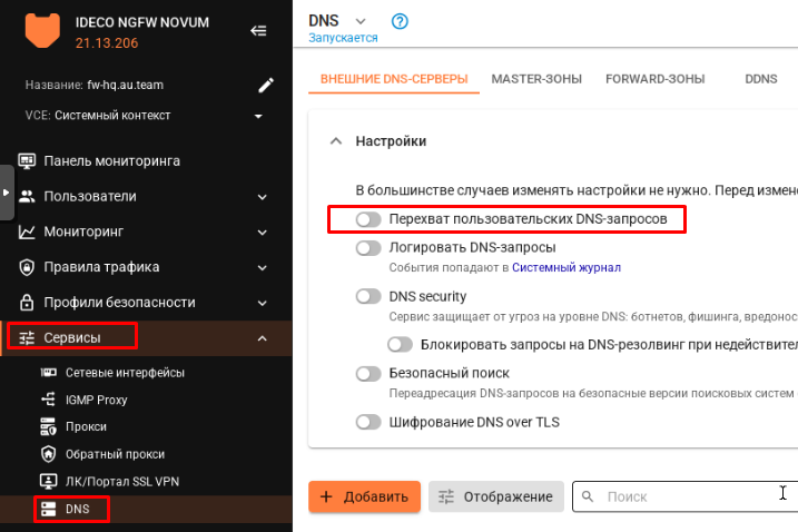- Назначаем имя на устройство в формате FQDN (fw-hq.au.team)